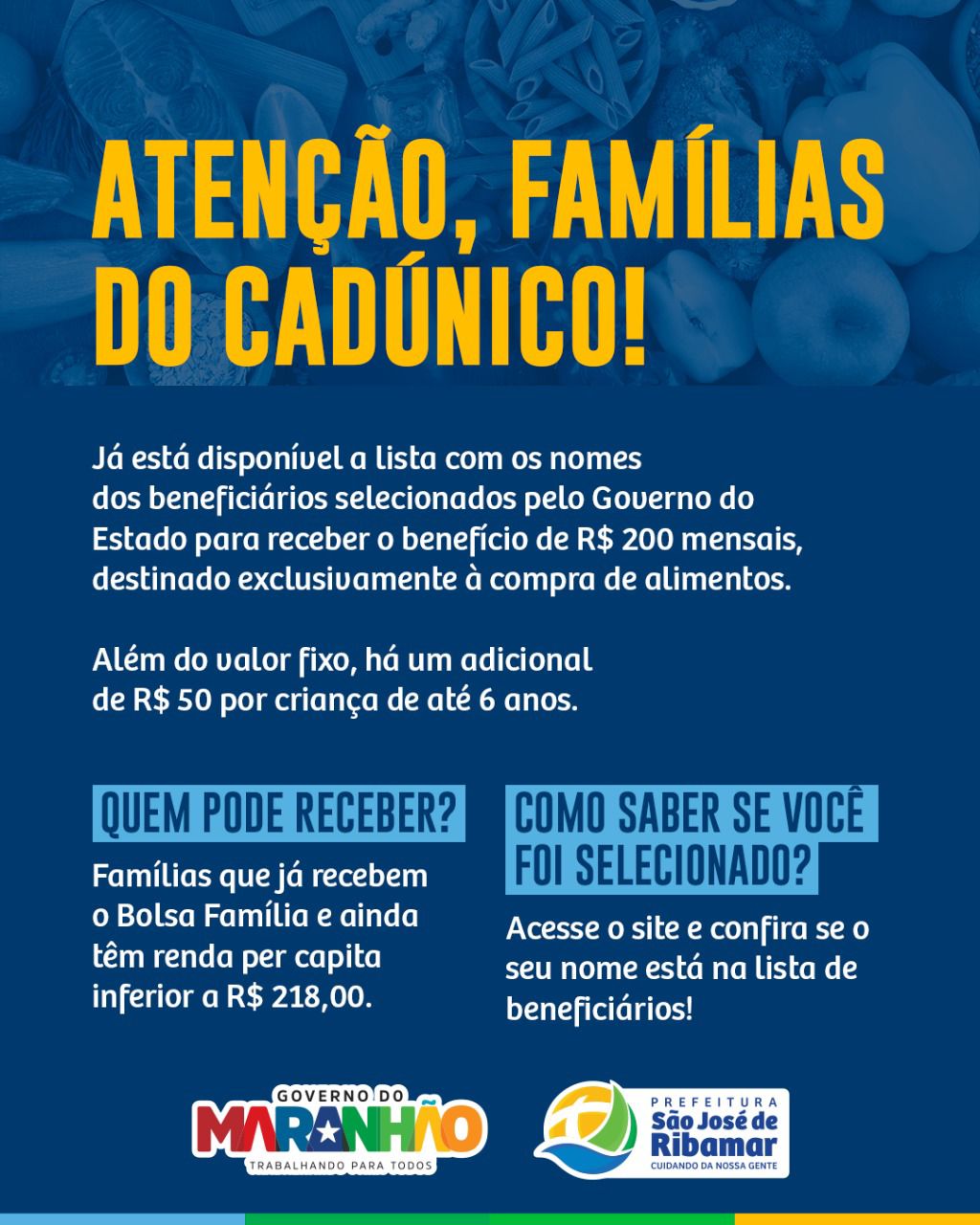 A Prefeitura de São José de Ribamar informa que já está disponível a lista com os nomes dos beneficiários selecionados pelo Governo do Estado para