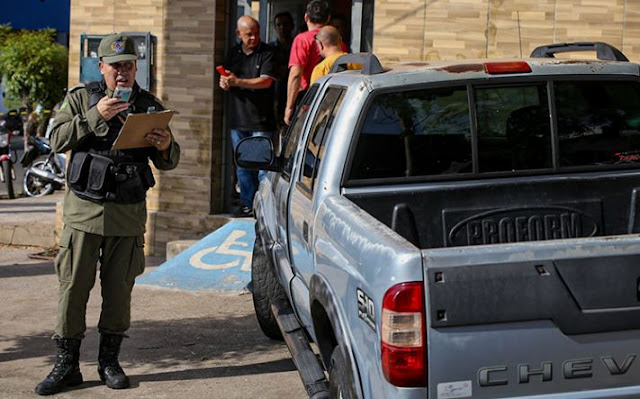 O sargento Carvalho Júnior foi assassinado a tiros dentro de sua caminhonete.Os três criminosos estavam em um veículo Renault Kwid branco O sargento Carvalho Júnior,