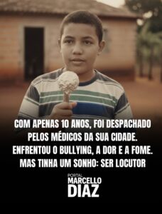São Luís (MA) — A trajetória de Marcello Diaz é daquelas que atravessam a dor, enfrentam o descrédito e provam que a origem não define o destino. Aos 10 anos de idade, ele foi desacreditado pelos médicos, sofreu bullying e conheceu a fome de perto.