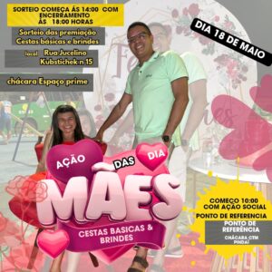 O evento acontecerá na Chácara Espaço Prime, localizada na rua Juscelino Kubitscheck, nº 15, e será dividido em dois grandes momentos: a partir das 10h, tem início a ação social com serviços gratuitos voltados para o bem-estar e cuidados pessoais. Já às 14h, começa o esperado festival de prêmios, com sorteios, entrega de cestas básicas, lanches e outras surpresas.