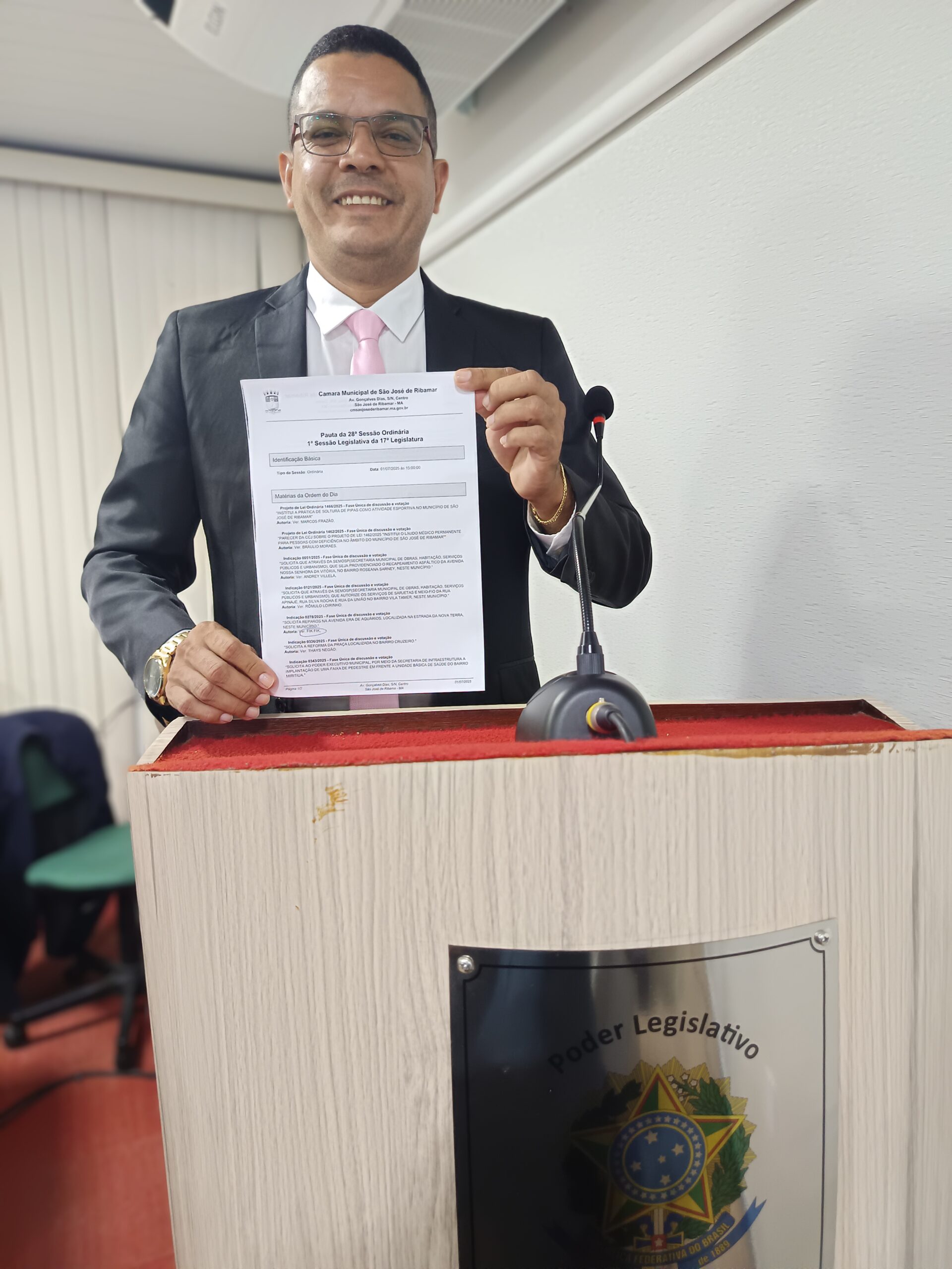 Durante a sessão realizada nesta terça-feira (27) na Câmara Municipal de São José de Ribamar, o vereador Fik Fik apresentou a Indicação nº 267/2025, por